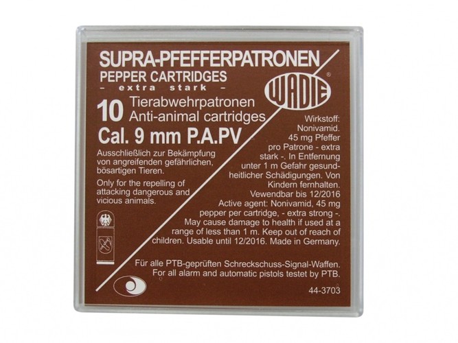 Super Pepřové náboje pro pistole cal. 9 mm s dvojitou dávkou technického pepře.