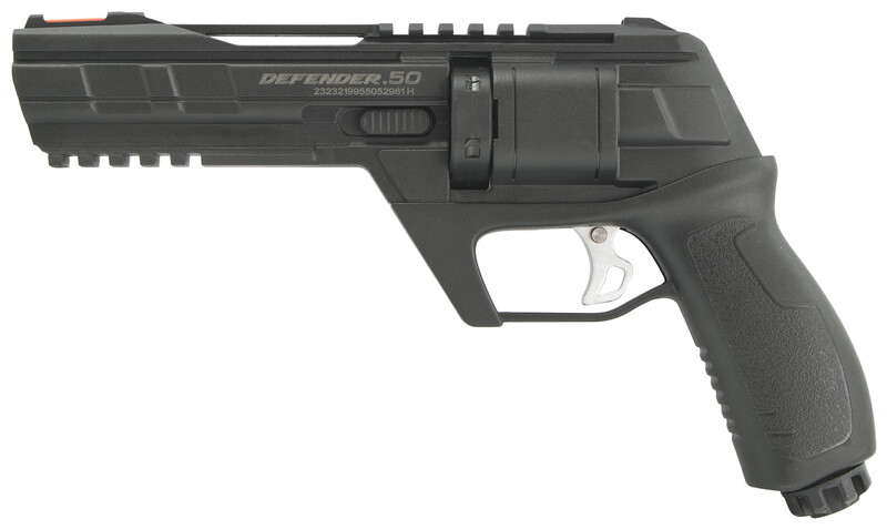 Revolver SPA DEFENDER .50 poháněný bombičkou CO2 12g, střelba gumovými kuličkami Rubber Ball kalibru .50, kapacita 6 ran, výkonová verze do 11J.